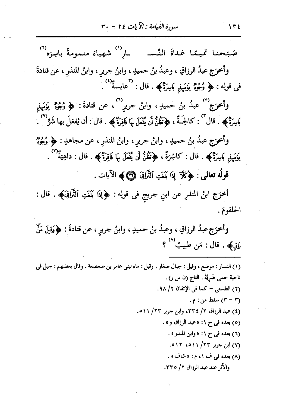 وَأخرَج عبد الرزاق ، وعَبد بن حُمَيد ، وَابن جَرِير ، وَابن المنذر عن قتادة رضي الله عنه : {ووجوه يومئذ باسرة} قال : كالحة {تظن أن يفعل بها فاقرة} قال : أن يفعل بها شر.