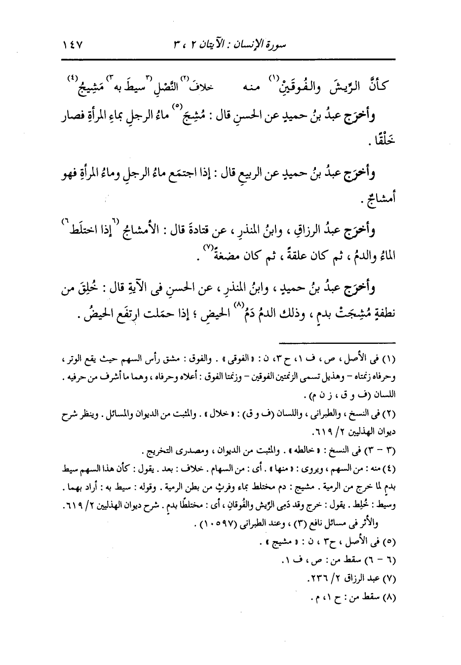 وَأخرَج عَبد بن حُمَيد عن الحسن قال مشج ماء الرجل بماء المرأة فصار خلقا.