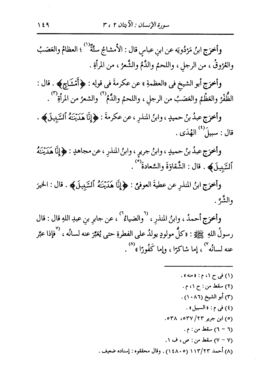 وأخرج عَبد بن حُمَيد ، وَابن المنذر عن عكرمة {إنا هديناه السبيل} قال : السبيل الهدى.