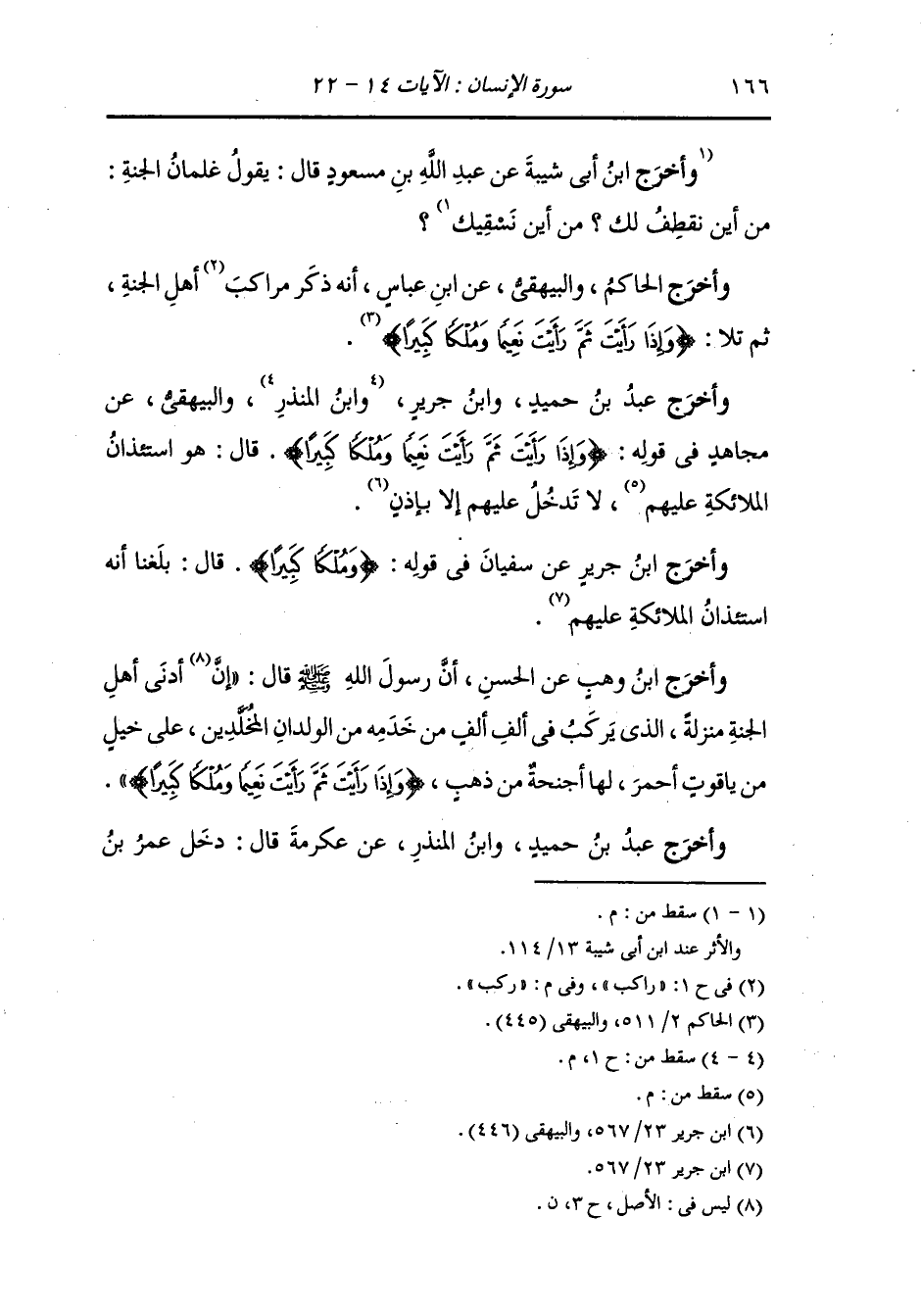 وَأخرَج الحاكم والبيهقي في البعث عن ابن عباس رضي الله عنهما أنه ذكر ركب أهل الجنة ثم تلا {وإذا رأيت ثم رأيت نعيما وملكا كبيرا}.