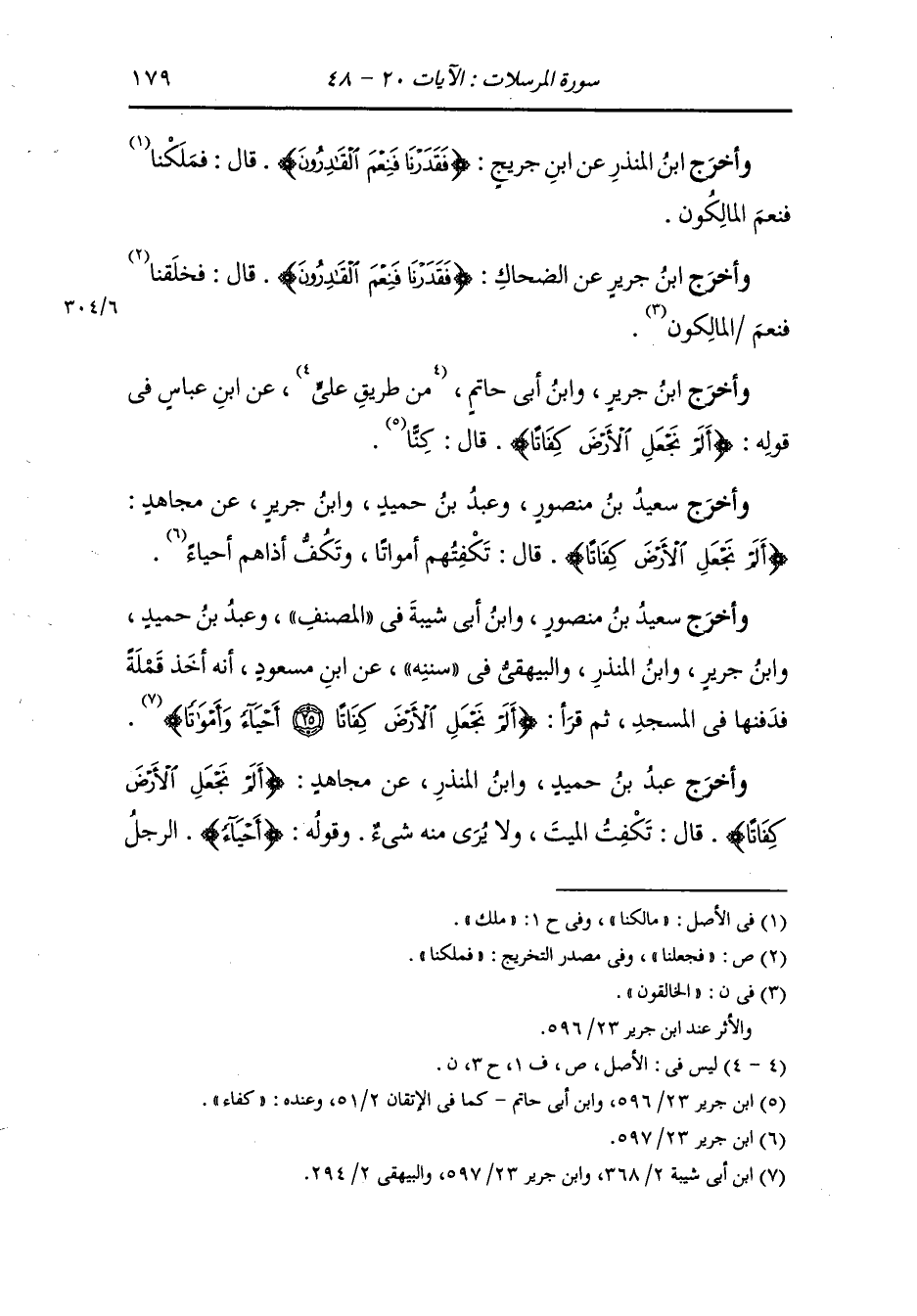 وأخرج ابن المنذر عن ابن جريج {فقدرنا فنعم القادرون} قال : فملكنا فنعم المالكون.
