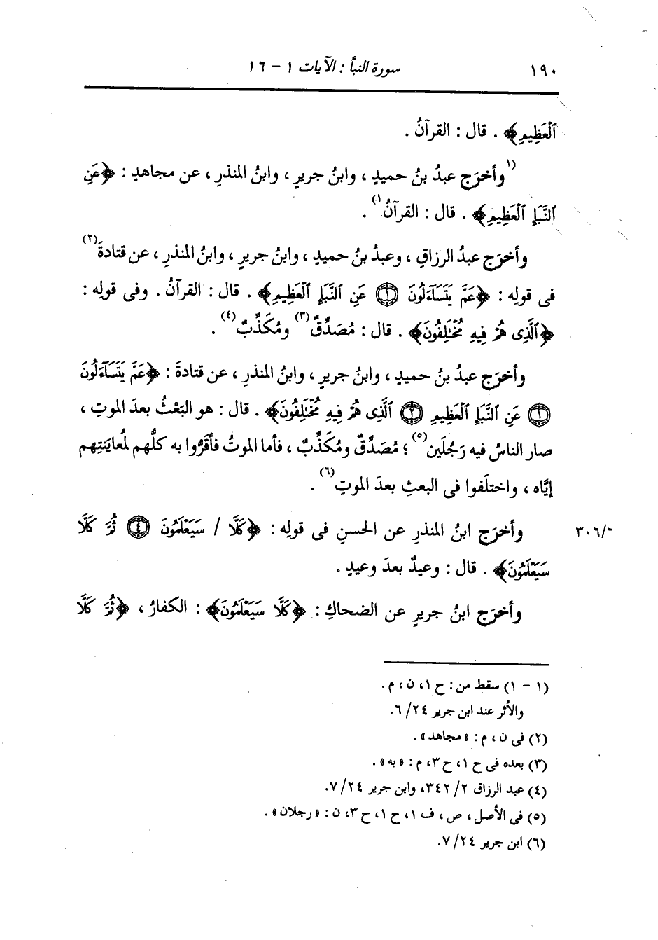 وأخرج عبد الرزاق ، وعَبد بن حُمَيد ، وَابن جَرِير ، وَابن المنذر عن مجاهد في قوله : {عم يتساءلون عن النبإ العظيم} قال : القرآن ، وفي قوله : {الذي هم فيه مختلفون} قال : مصدق به ومكذب.