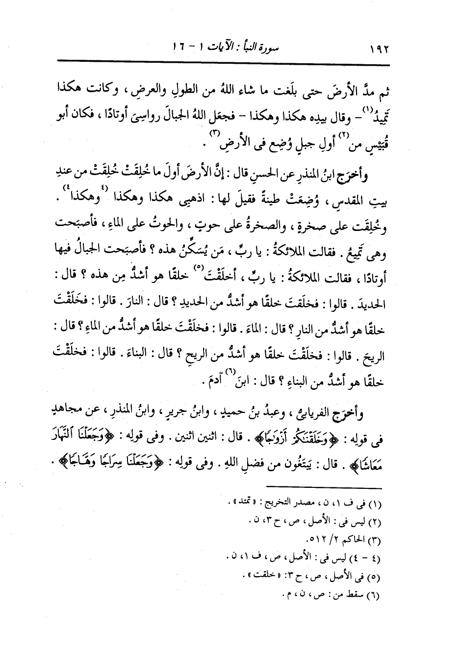 وأخرج الفريابي ، وعَبد بن حُمَيد ، وَابن جَرِير ، وَابن المنذر عن مجاهد في قوله : {وخلقناكم أزواجا} قال : اثنين اثنين وفي قوله : {وجعلنا النهار معاشا} قال : يبتغون من فضل الله وفي قوله : {وجعلنا سراجا وهاجا}