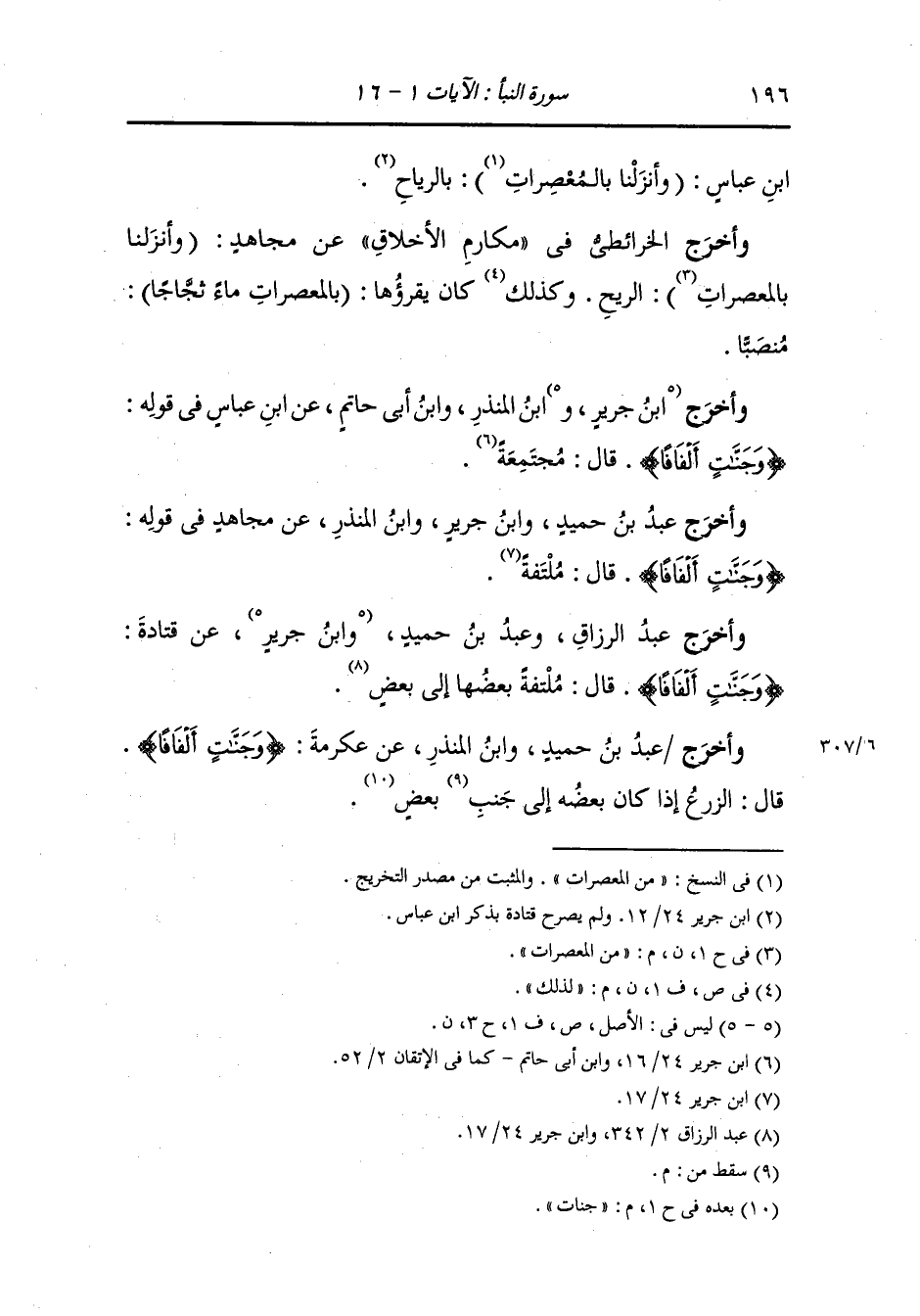 وأخرج الخرائطي في مكارم الأخلاق عن مجاهد {وأنزلنا من المعصرات} الريح ولذلك كان يقرؤها : بالمعصرات ماء ثجاجا منصبا.
