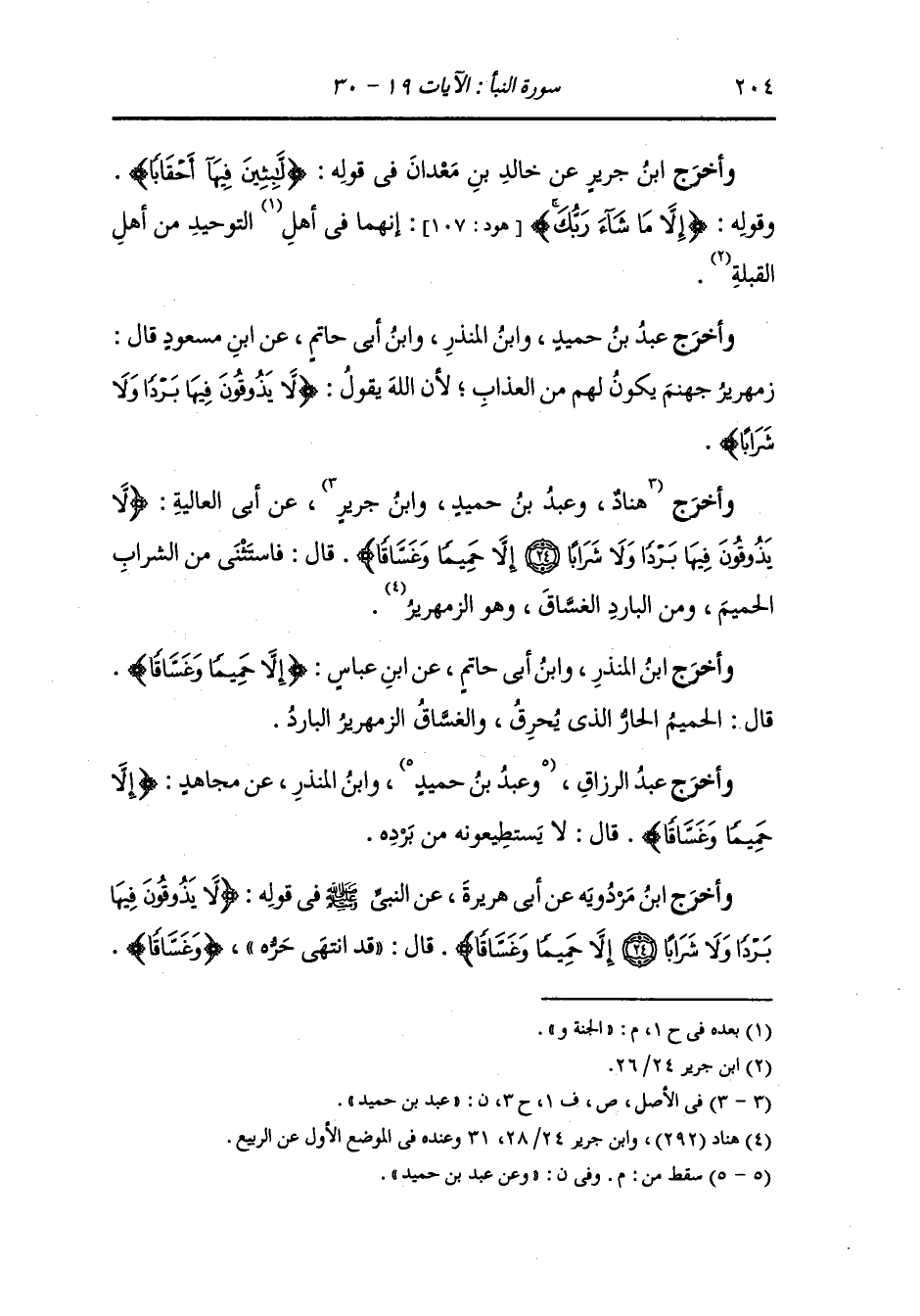 وأخرج هناد ، وعَبد بن حُمَيد ، وَابن جَرِير عن أبي العالية {لا يذوقون فيها بردا ولا شرابا إلا حميما وغساقا} قال : فاستثنى من الشراب الحميم ومن البارد الغساق وهو الزمهرير.