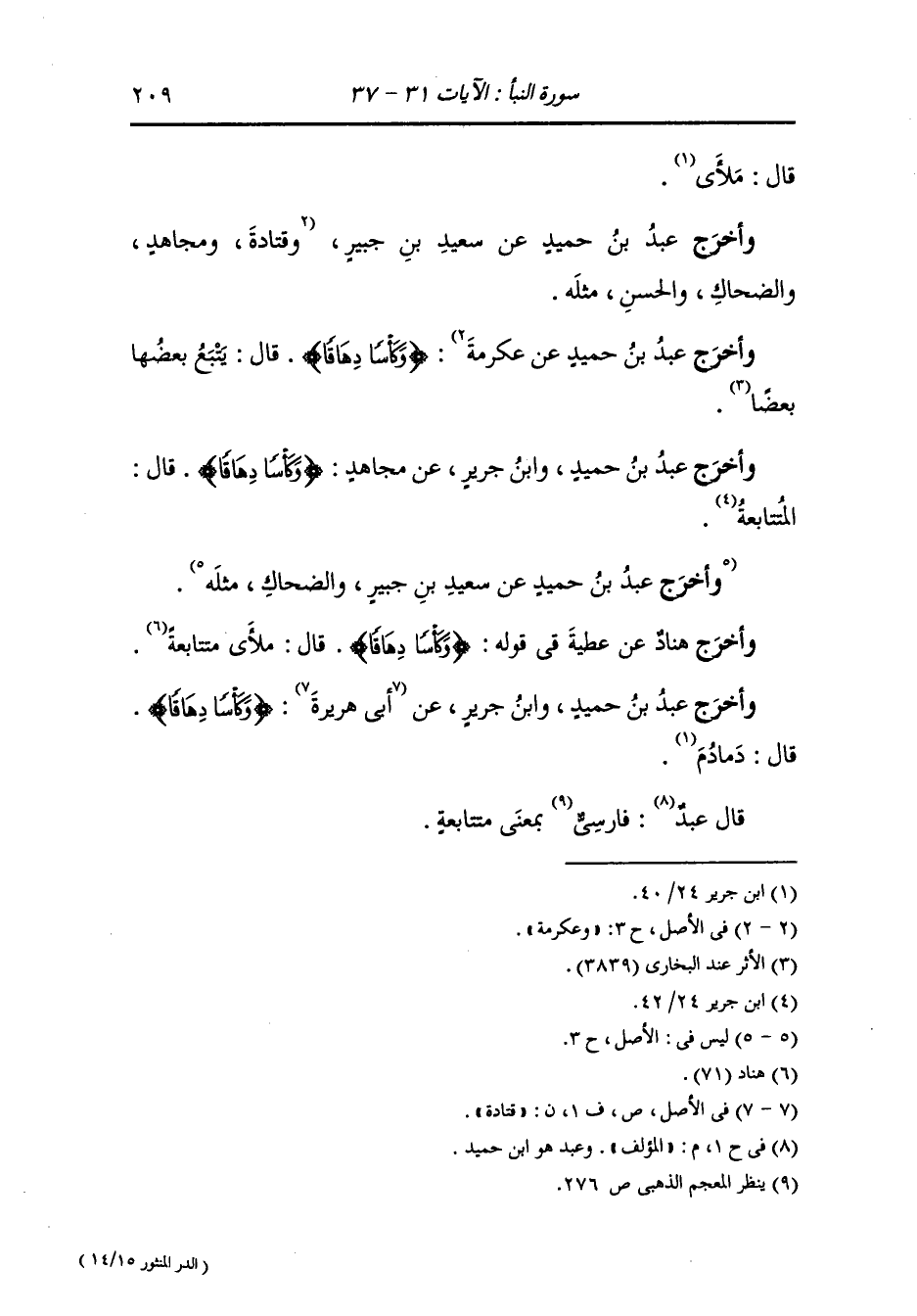 وأخرج عَبد بن حُمَيد عن عكرمة {وكأسا دهاقا} قال : يتبع بعضها بعضا.
