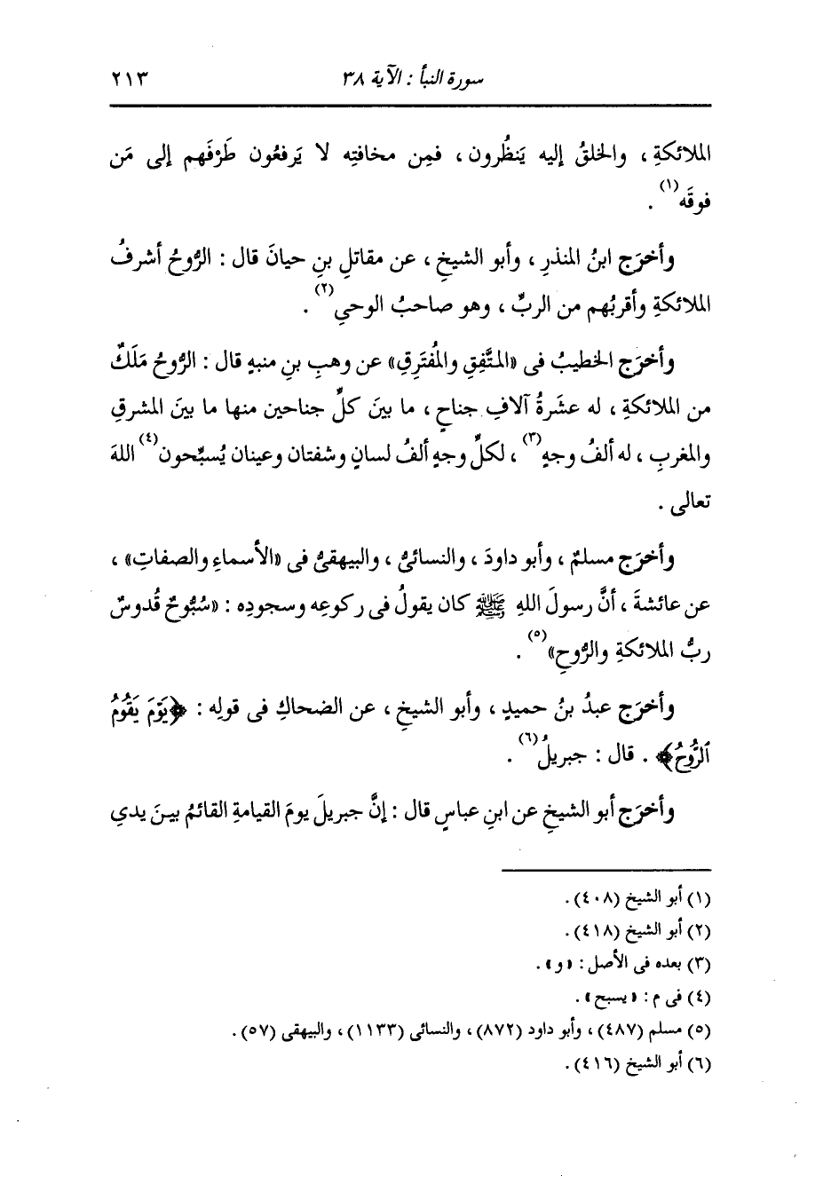 وأخرج عَبد بن حُمَيد وأبو الشيخ عن الضحاك في قوله : {يوم يقوم الروح} قال : جبريل.