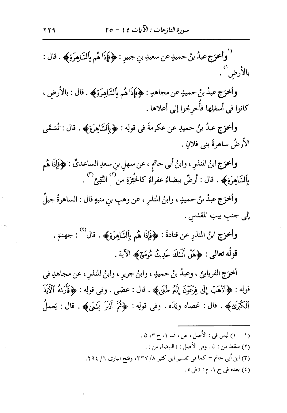 وأخرج عَبد بن حُمَيد عن سعيد بن جبير {فإذا هم بالساهرة} قال : بالأرض.
