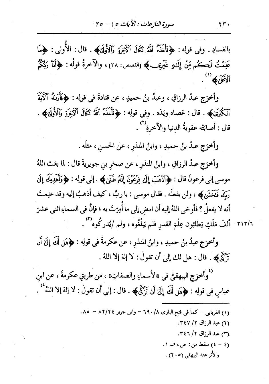 وأخرج عبد الرزاق ، وعَبد بن حُمَيد عن قتادة في قوله : {فأراه الآية الكبرى} قال : عصاه ويده وفي قوله : {فأخذه الله نكال الآخرة والأولى} قال : صابته عقوبة الدنيا والآخرة.