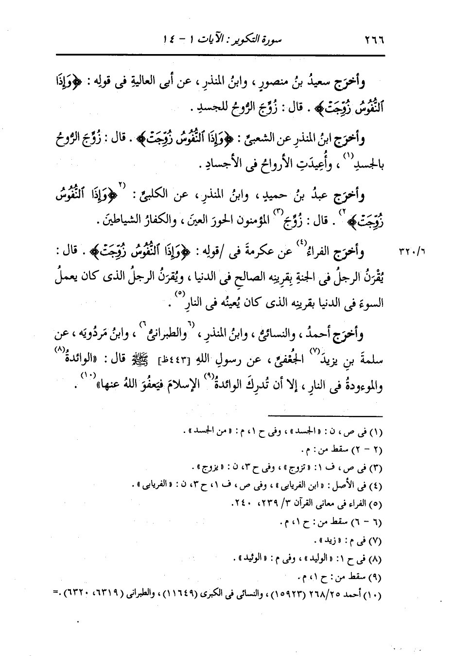 وأخرج الفراء عن عكرمة في قوله : {وإذا النفوس زوجت} قال : يقرن الرجل في الجنة بقرينه الصالح في الدنيا ويقرن الرجل الذي كان يعمل السوء في الدنيا بقرينه الذي كان يعينه في النار.