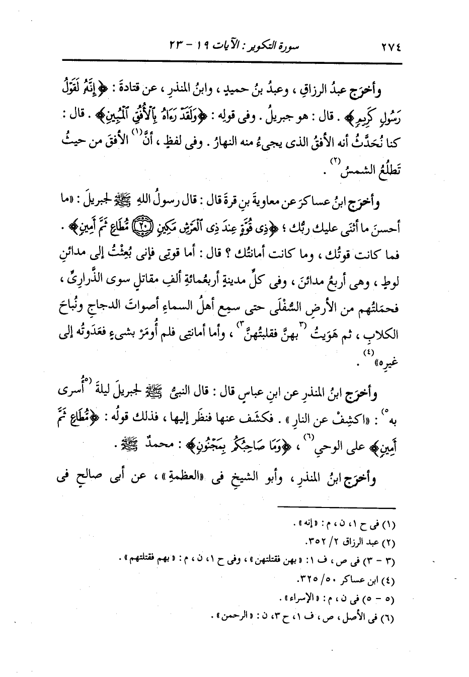 وأخرج عبد الرزاق ، وعَبد بن حُمَيد ، وَابن المنذر عن قتادة {إنه لقول رسول كريم} قال : هو جبريل وفي قوله : {ولقد رآه بالأفق المبين} قال : كنا نحدث أنه الأفق الذي يجيء منه النهار وفي لفظ إنه الأفق من حيث تطلع الشمس.