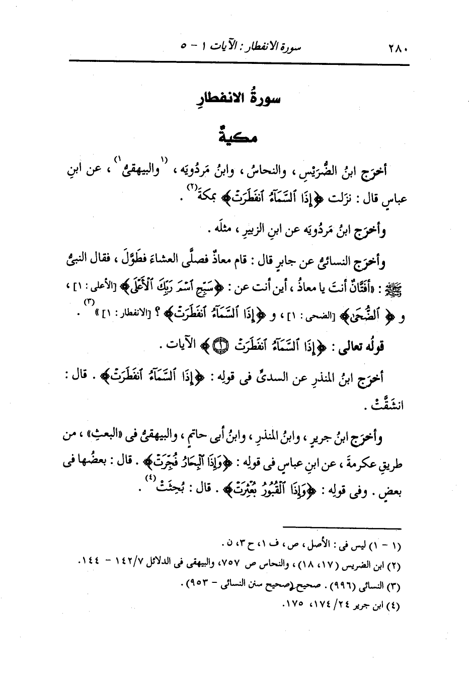 أَخْرَج ابن الضريس والنحاس ، وَابن مردويه والبيهقي عن ابن عباس قال : نزلت {إذا السماء انفطرت} بمكة.