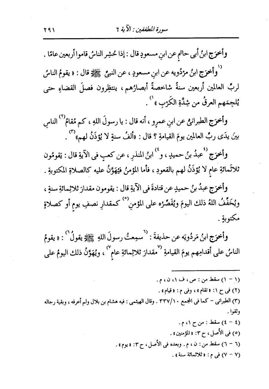وأخرج ابن مردويه عن حذيفة يقوم الناس على أقدامهم يوم القيامة ثلاثمائة سنة ويهون ذلك اليوم على