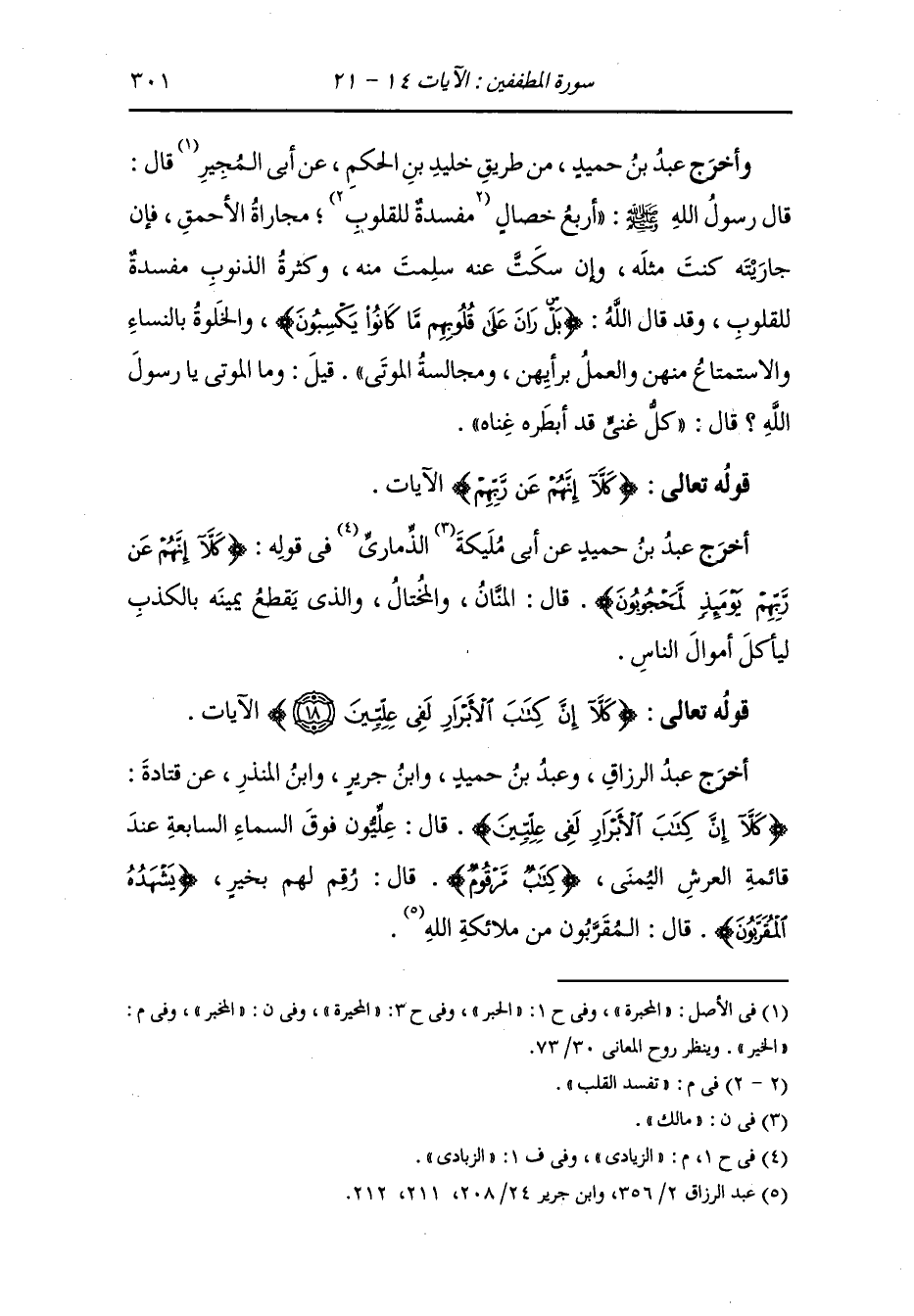 أخرج عَبد بن حُمَيد عن أبي مليكة الزيادي رضي الله عنه في قوله : {كلا إنهم عن ربهم يومئذ لمحجوبون} قال : المنان والمختال والذي يقطع يمينه بالكذب ليأكل أموال الناس والله أعلم.