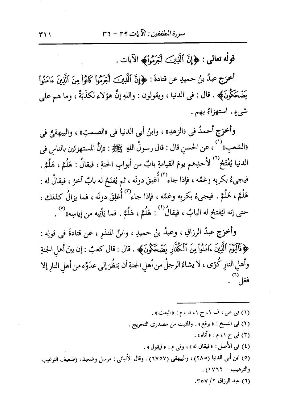 وأخرج عَبد بن حُمَيد عن قتادة {إن الذين أجرموا كانوا من الذين آمنوا يضحكون} قال : في الدنيا ويقولون والله إن هؤلاء لكذبة وما هم على شيء استهزاء بهم.