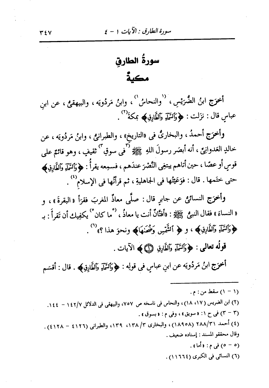 أَخْرَج ابن الضريس ، وَابن مردويه والبيهقي عن ابن عباس قال : نزلت {والسماء والطارق} بمكة.