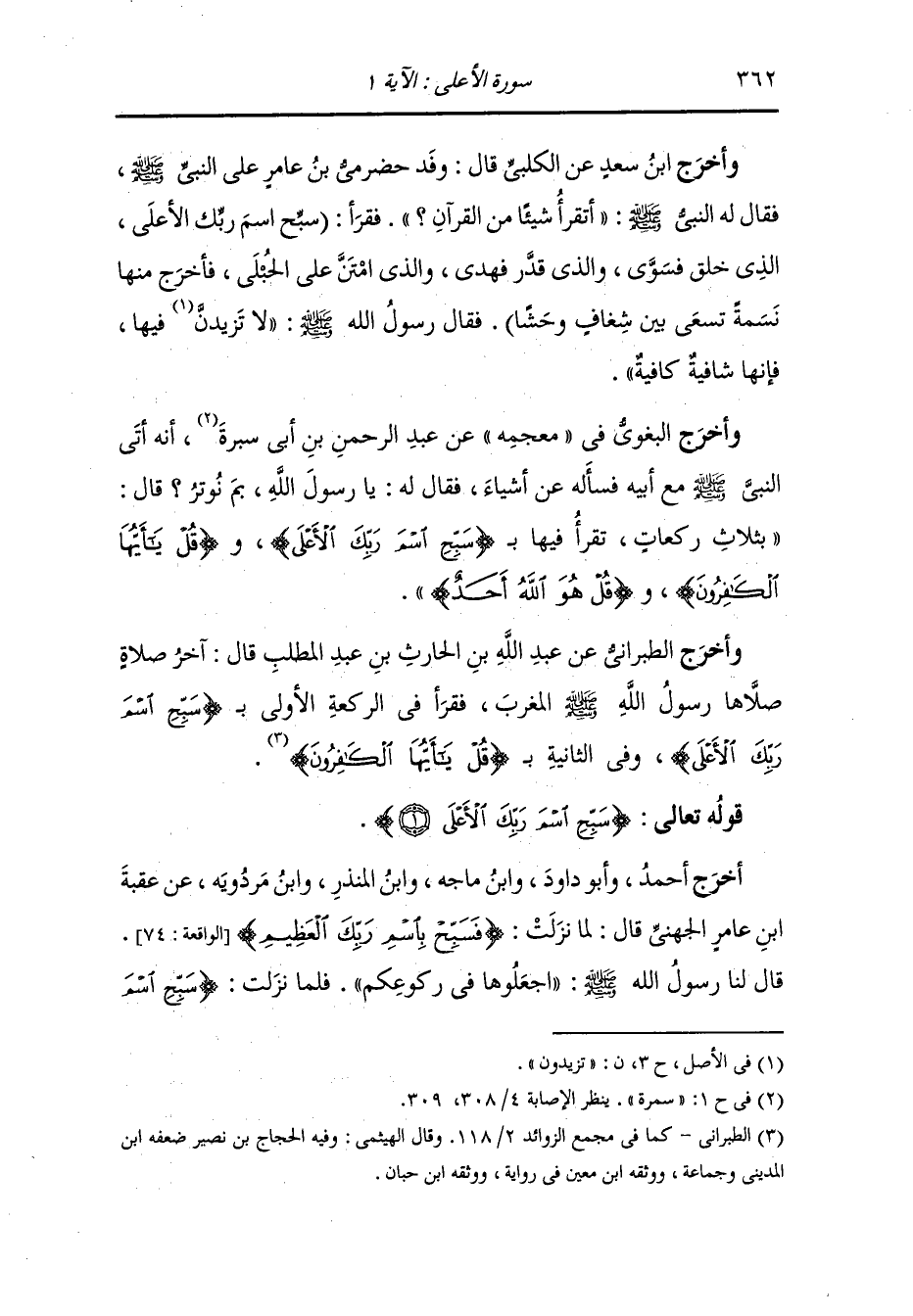 أخرج أحمد وأبو داود ، وَابن ماجة ، وَابن المنذر ، وَابن مردويه عن عقبة بن عامر الجهني قال : لما أنزلت (فسبح باسم ربك العظيم) (سورة الواقعة الآية 74) قال لنا رسول الله صلى الله عليه وسلم : اجعلوها في ركوعكم فلما نزلت {سبح اسم