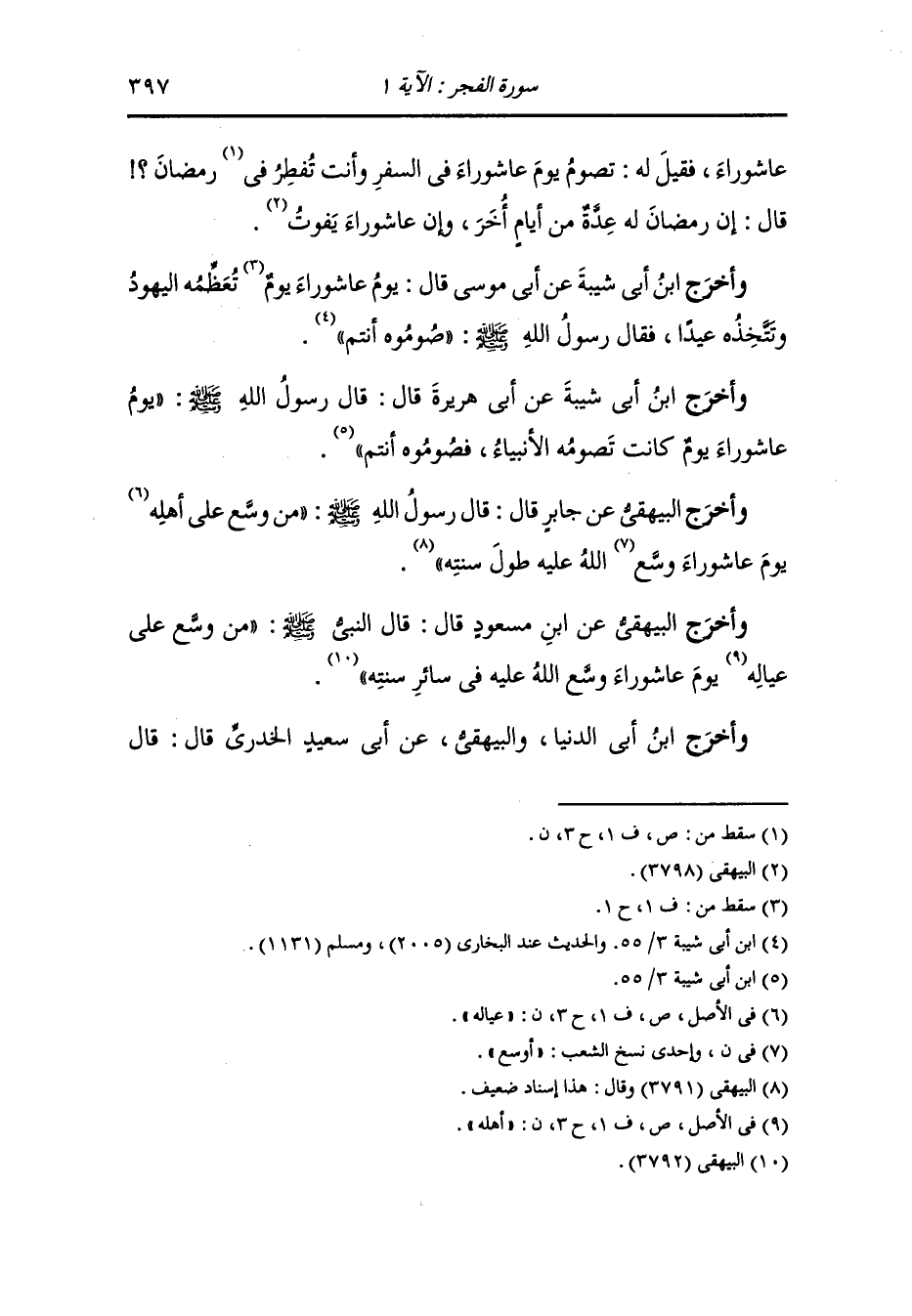 وأخرج البيهقي عن ابن مسعود قال : قال النَّبِيّ صلى الله عليه وسلم : من وسع على عياله يوم عاشوراء وسع الله عليه في سائر سنته.