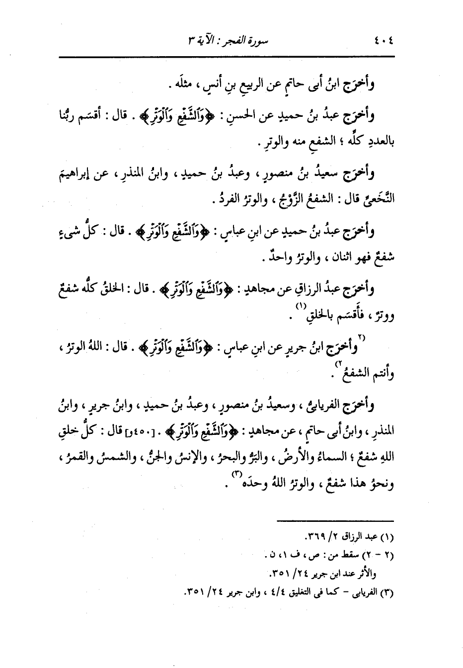 وأخرج سعيد بن منصور ، وعَبد بن حُمَيد ، وَابن المنذر عن إبراهيم النخعي قال : الشفع الزوج والوترالفرد.