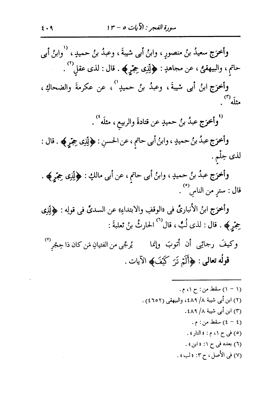 وأخرج عَبد بن حُمَيد ، وَابن أبي حاتم عن الحسن {لذي حجر} قال : لذي حلم.