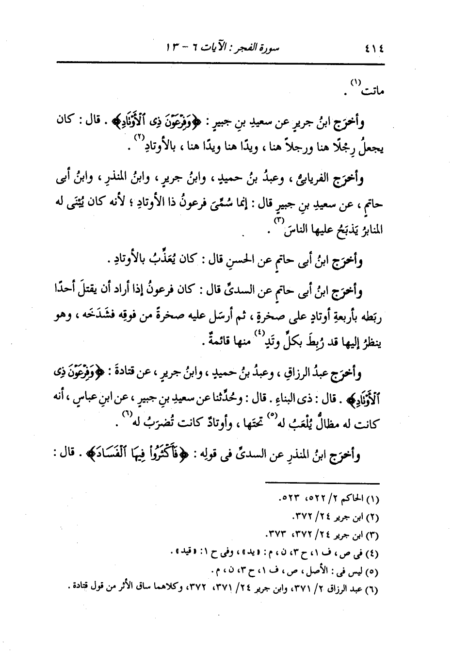 وأخرج الفريابي ، وعَبد بن حُمَيد ، وَابن جَرِير ، وَابن المنذر ، وَابن أبي حاتم عن سعيد بن جبير قال : إنما سمي فرعون ذا الأوتاد لأنه كان يبني له المنابر يذبح عليها الناس.