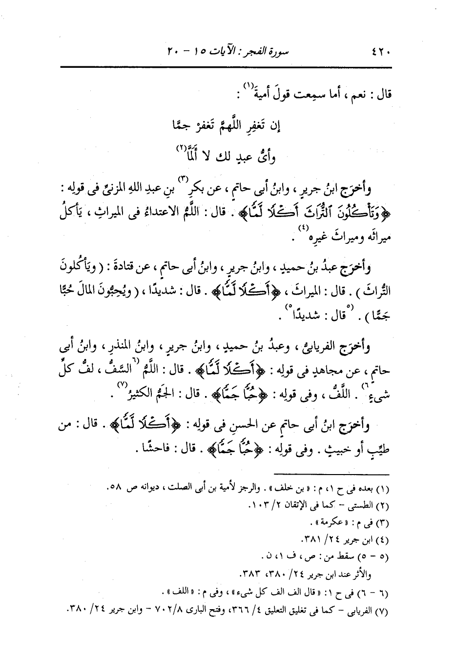 وأخرج الفريابي ، وعَبد بن حُمَيد ، وَابن جَرِير ، وَابن المنذر ، وَابن أبي حاتم عن مجاهد في قوله : {أكلا لما} قال : اللم اللف وفي قوله : {حبا جما} قال : الجم الكثير.