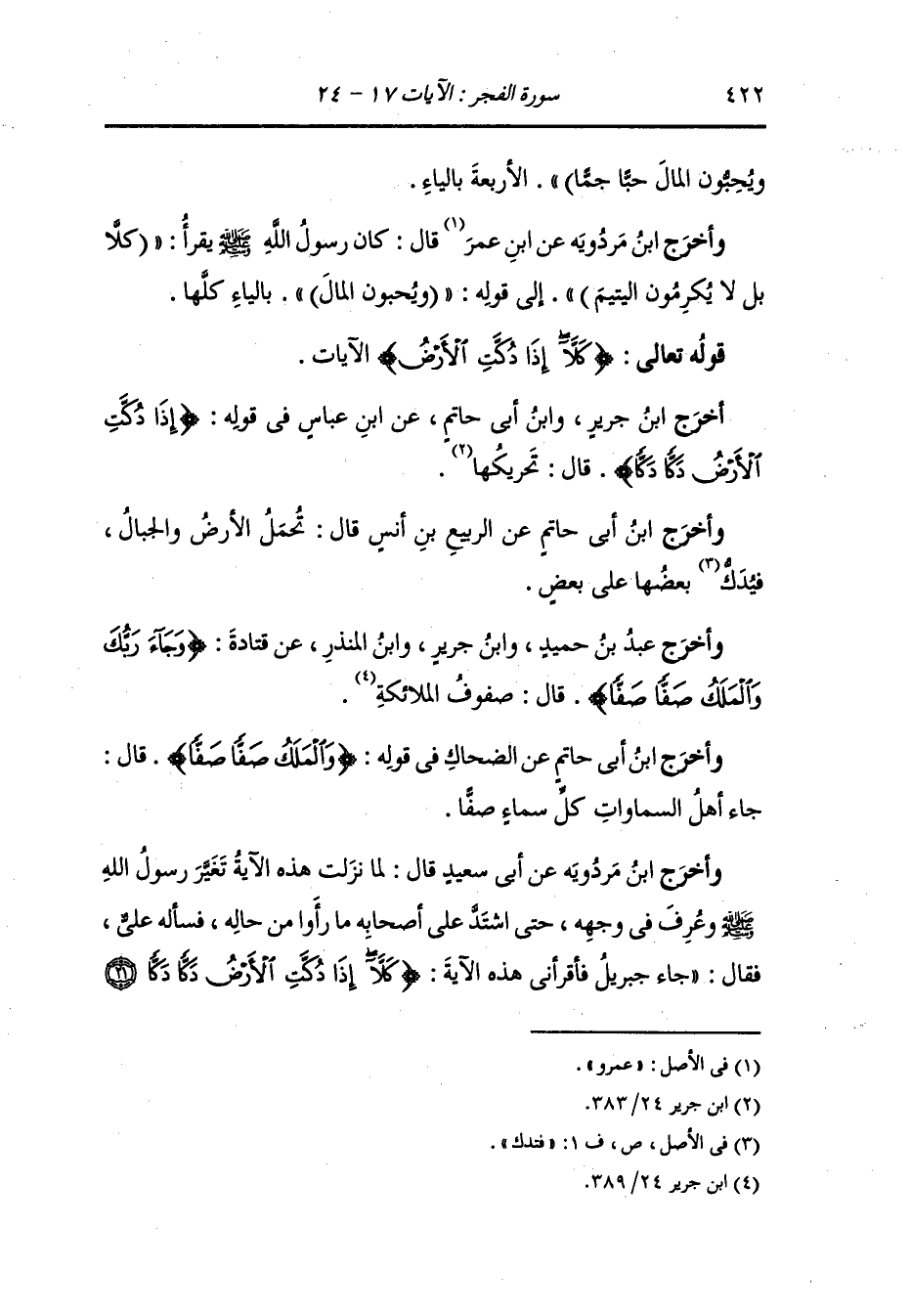 وأخرج عَبد بن حُمَيد ، وَابن جَرِير ، وَابن المنذر عن قتادة رضي الله عنه {وجاء ربك والملك صفا صفا} قال : صفوف الملائكة.