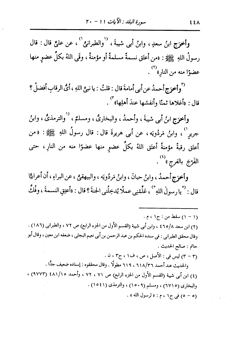 وأخرج أحمد ، وَابن حبان ، وَابن مردويه والبيهقي عن البراء أن أعرابيا قال لرسول الله علمني عملا يدخلني الجنة قال : أعتق النسمة وفك