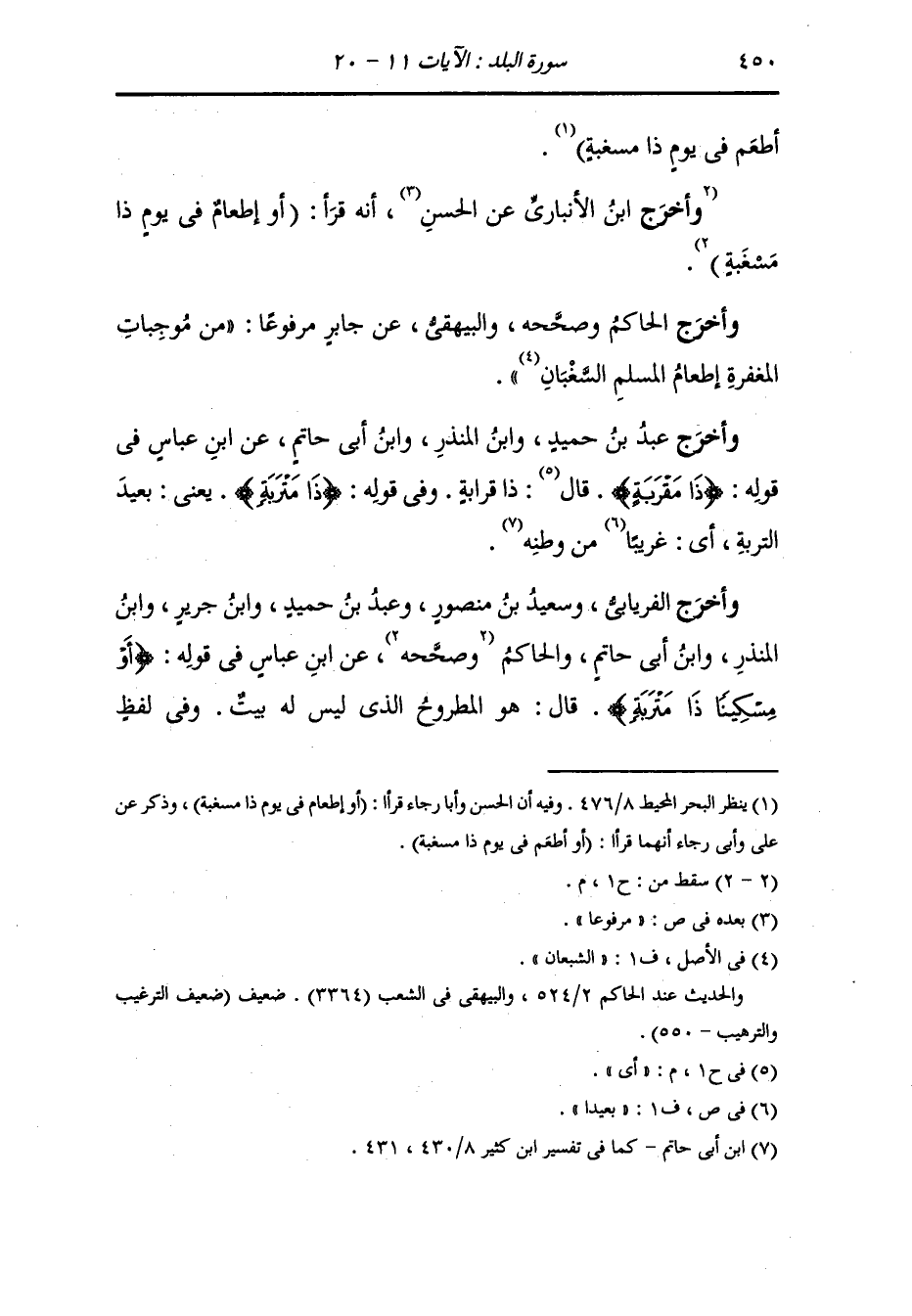 وأخرج الفريابي وسعيد بن منصور ، وعَبد بن حُمَيد ، وَابن جَرِير ، وَابن المنذر ، وَابن أبي حاتم والحاكم عن ابن عباس رضي اله عنهما في قوله : {أو مسكينا ذا متربة} قال : هو المطروح الذي ليس له بيت وفي لفظ
