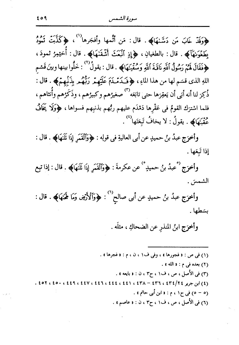 وأخرج عَبد بن حُمَيد عن أبي العالية {والقمر إذا تلاها} قال : إذا تبعها.