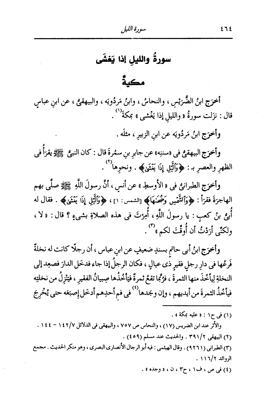 أَخْرَج ابن الضريس والنحاس ، وَابن مردويه والبيهقي عن ابن عباس قال : نزلت سورة {والليل إذا يغشى} بمكة.