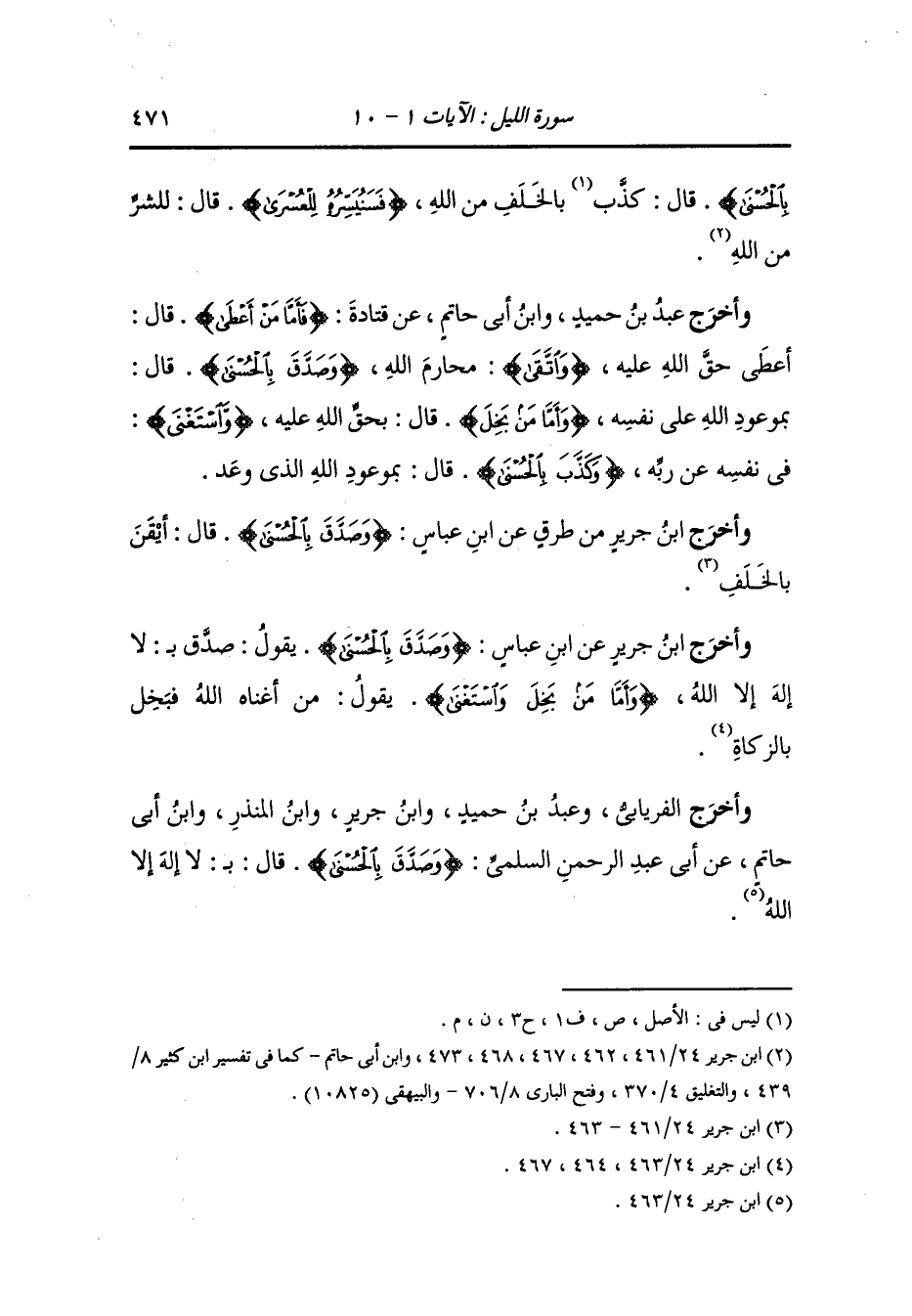 وأخرج ابن جرير عن ابن عباس {وصدق بالحسنى} يقول صدق بلا إله إلا الله {وأما من بخل واستغنى} يقول : من أغناه الله فبخل بالزكاة.