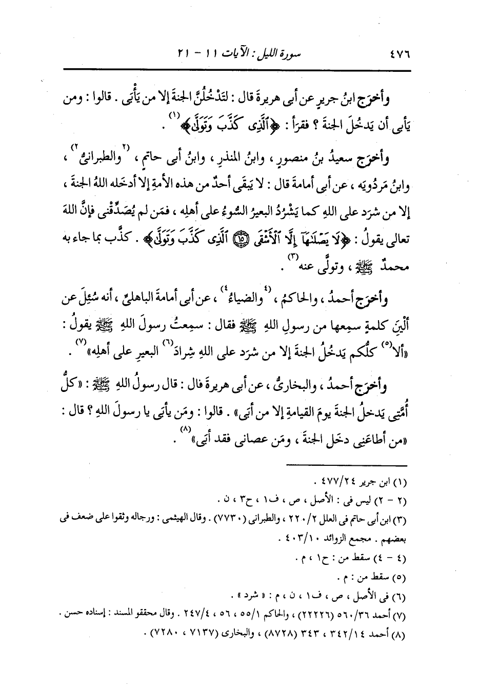 وأخرج ابن جرير عن أبي هريرة قال : لتدخلن الجنة إلا من يأبى ، قالوا ومن يأبى أن يدخل الجنة فقرأ {الذي كذب وتولى}.