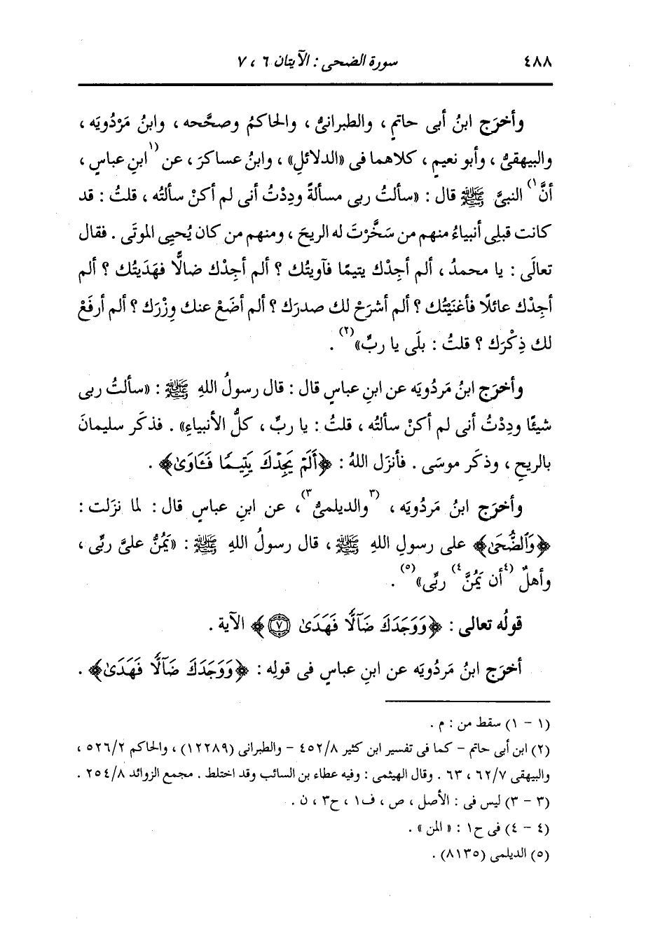 وأخرج ابن مردويه والديلمي عن ابن عباس رضي الله عنهما قال : لما نزلت {والضحى} على رسو ل الله صلى الله عليه وسلم قال رسول الله صلى الله عليه وسلم : يمن علي ربي وأهل أن يمن ربي والله أعلم.