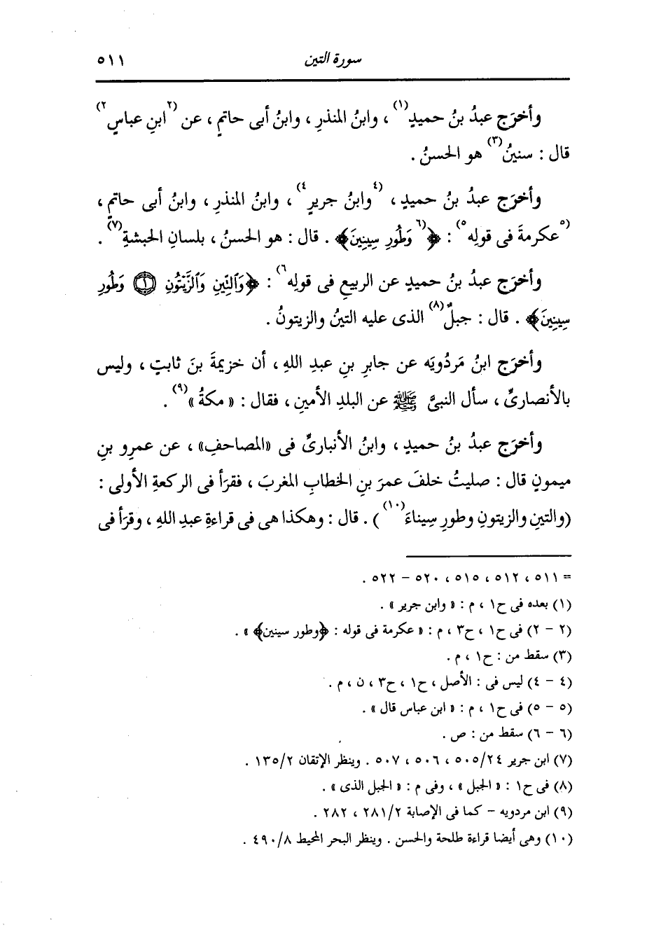 وأخرج عَبد بن حُمَيد ، وَابن جَرِير ، وَابن المنذر ، وَابن أبي حاتم عن عكرمة في قوله : {وطور سينين} قال : هو الحسن.