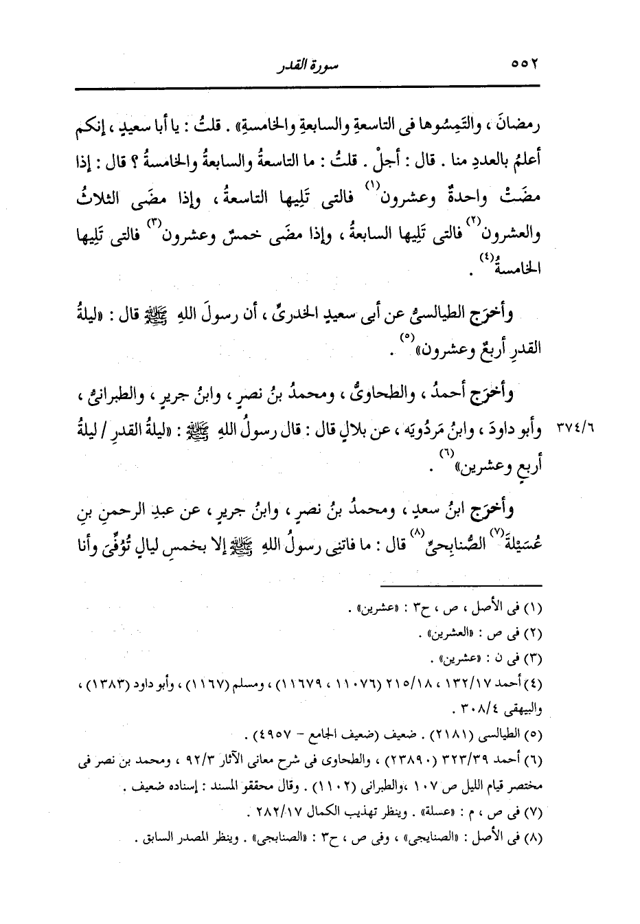 وأخرج أحمد والطحاوي ومحمد بن نصر ، وَابن جَرِير والطبراني وأبو داود ، وَابن مردويه عن بلال رضي الله عنه قال : قال رسول الله صلى الله عليه وسلم : ليلة القدر ليلة أربع وعشرين.