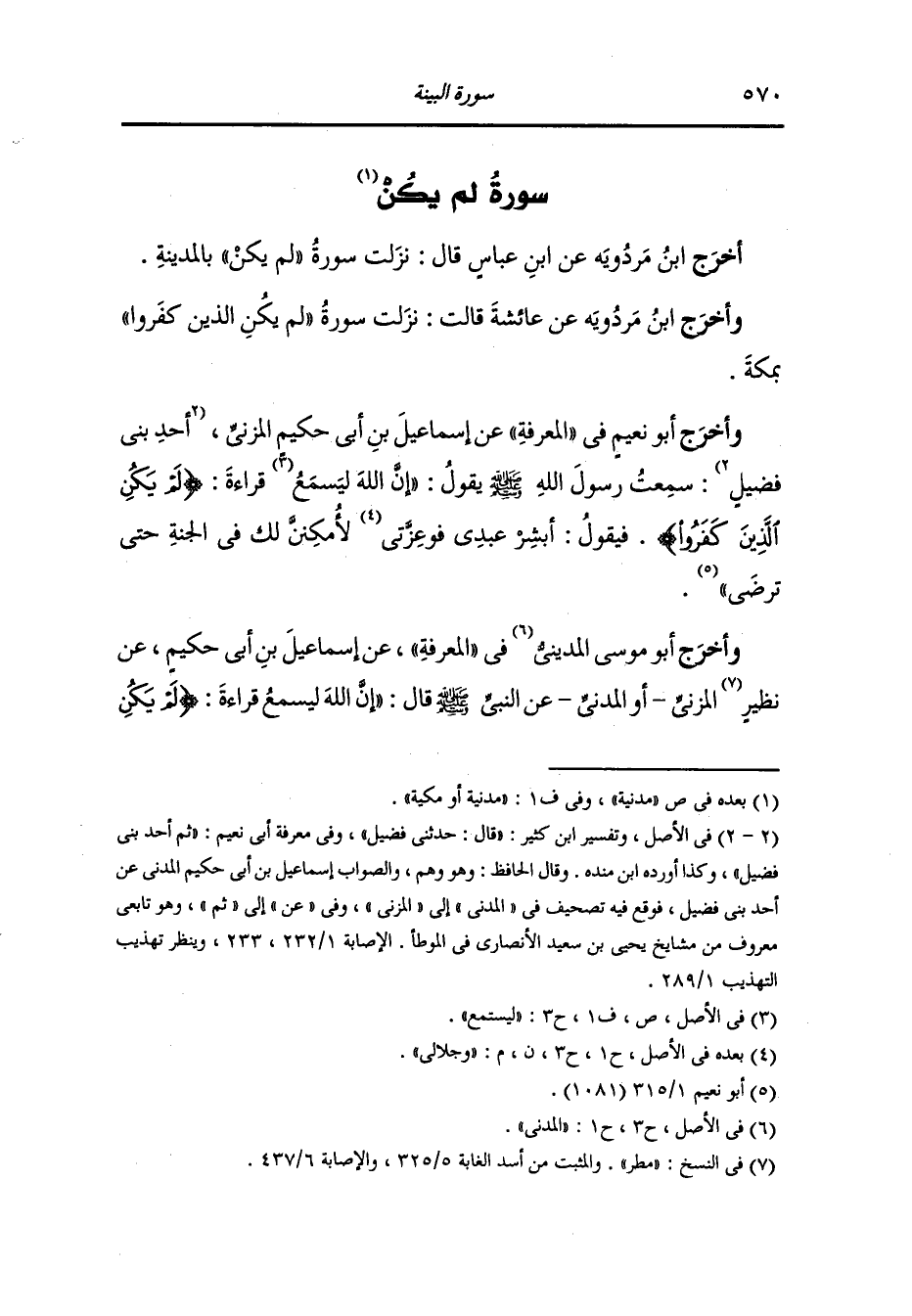 أَخْرَج ابن مردويه عن ابن عباس قال : نزلت سورة {لم يكن} بالمدينة.
