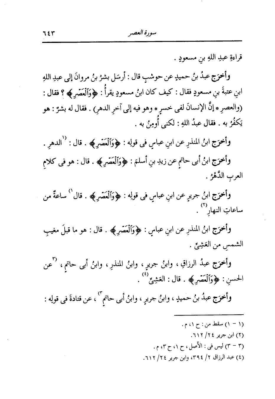 {والعصر} قال : ساعة من ساعات النهار وفي قوله : {وتواصوا بالحق} قال : كتاب الله {وتواصوا بالصبر} قال : طاعة الله.