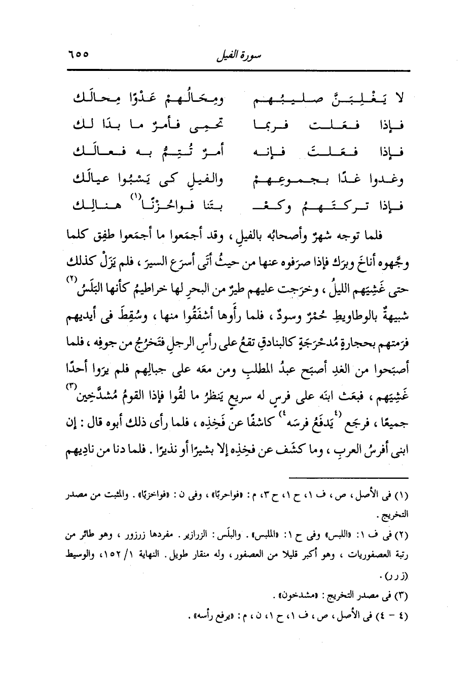 وأخرج عَبد بن حُمَيد ، وَابن المنذر ، وَابن مردويه وأبو نعيم والبيهقي معا في الدلائل عن ابن عباس قال : جاء أصحاب الفيل حتى نزلوا الصفاح فأتاهم عبد المطلب فقال : إن هذا بيت الله لم يسلط عليه أحد ، قالوا : لا نرجع حتى نهدمه وكانوا لا يقدمون فيلهم إلا تأخر فدعا الله الطير الأبابيل فأعطاها حجارة سودا عليهم الطين فلما حاذتهم رمتهم فما بقي منه أحد إلا أخذته الحكة فكان لا يحك إنسان منهم جلده إلا تساقط لحمه.