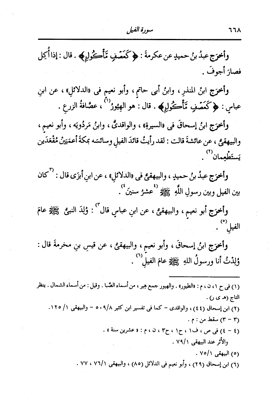 وأخرج البيهقي عن محمد بن جبير بن مطعم قال : ولد رسول الله صلى الله عليه وسلم عام الفيل وكانت عكاظ بعد الفيل بخمس عشرة سنة وبني البيت على رأس خمس وعشرين سنة من الفيل وتنبأ رسول الله صلى الله عليه وسلم على رأس أربعين من الفيل