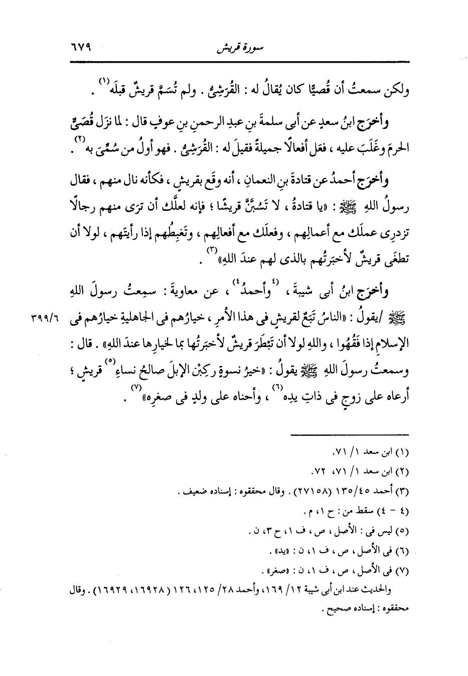 وأخرج ابن أبي شيبة وأحمد عن جبير بن مطعم قال : قال رسول الله صلى الله عليه وسلم : إن للقرشي مثلي قوة الرجل من غير قريش ، قيل للزهري : ما عني بذلك قال : نبل الرأي.