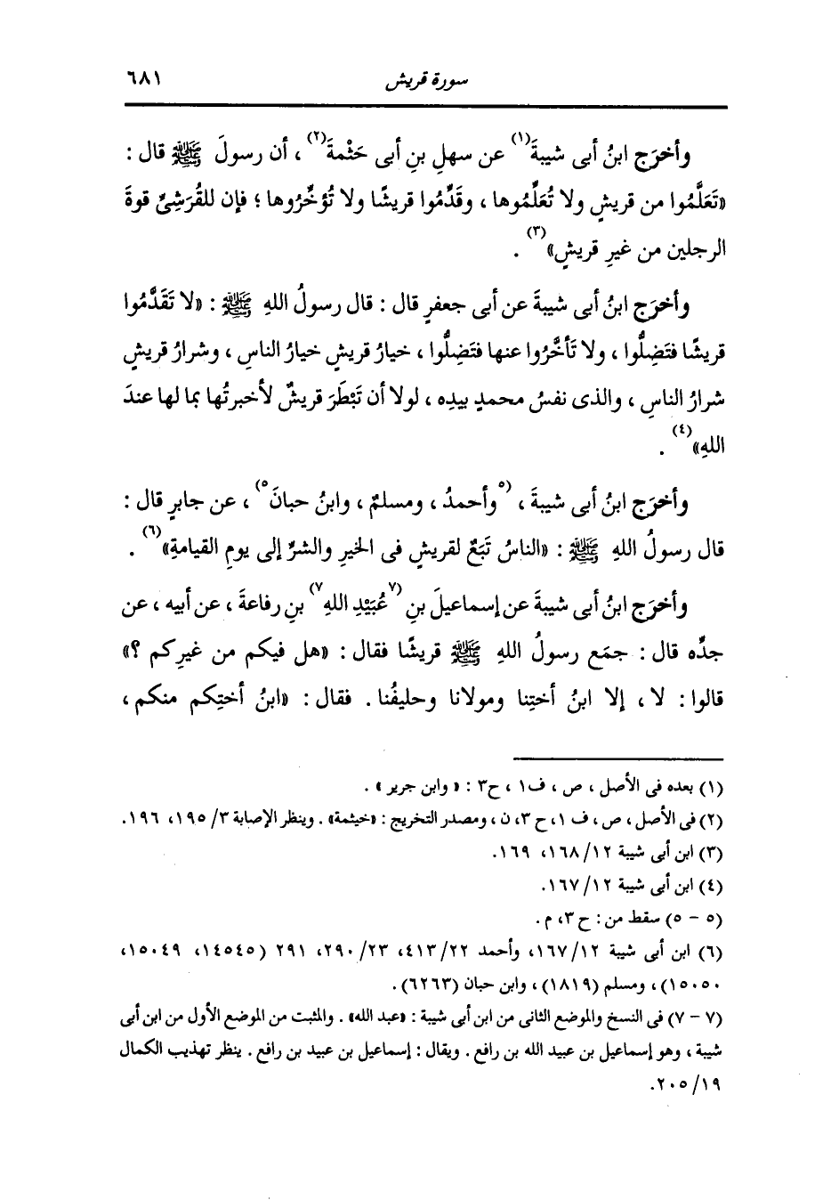 وأخرج ابن أبي شيبة عن أبي هريرة قال : قال رسول الله صلى الله عليه وسلم : الناس تبع لقريش في هذا الأمر خيارهم تبع لخيارهم وشرارهم تبع لشرارهم.