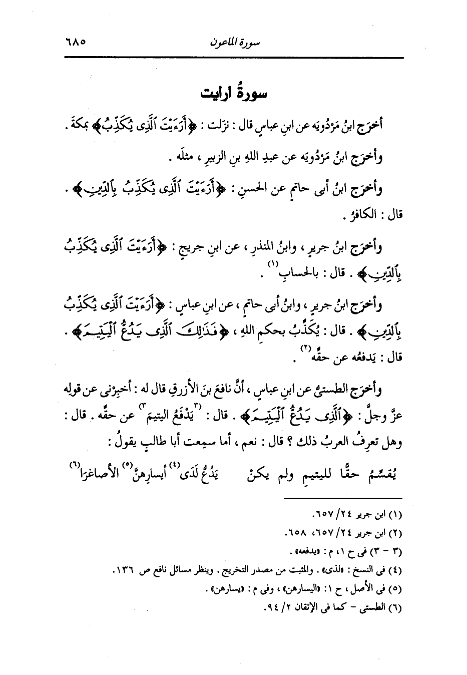 وأخرج سعيد بن منصور عن محمد بن كعب {يدع اليتيم} قال : يدفعه.