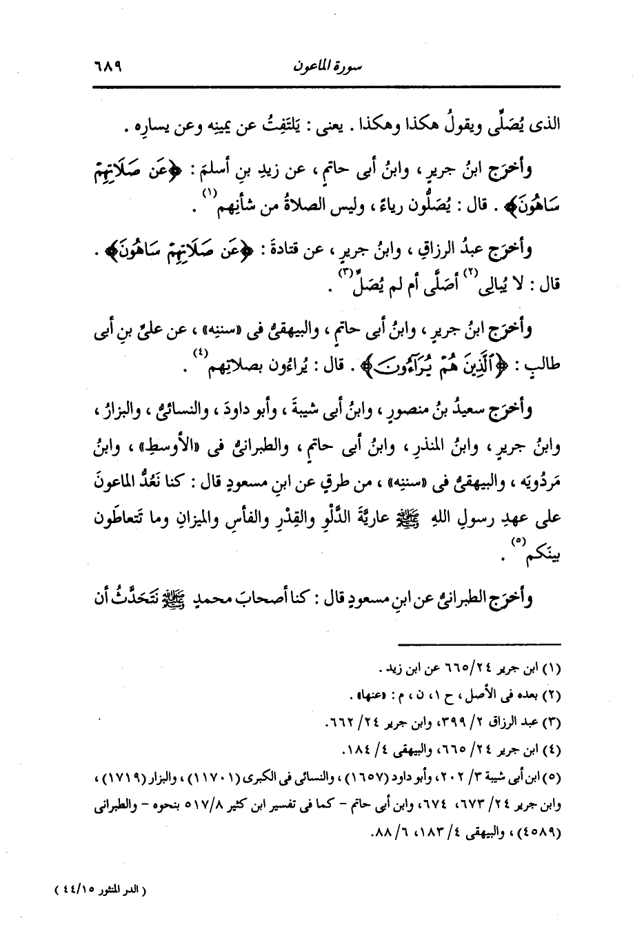 وأخرج ابن مردويه عن ابن مسعود قال : كان المسلمون يستعيرون من المنافقين الدلو والقدر والفأس وشبهه فيمنعونهم فأنزل الله {ويمنعون الماعون}.