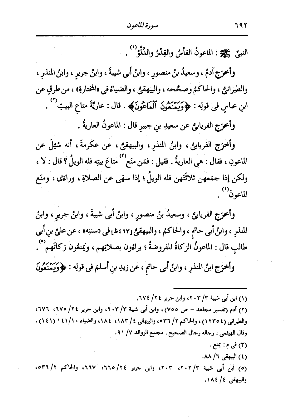 وأخرج البيهقي عن ابن عباس {ويمنعون الماعون} قال : الزكاة.
