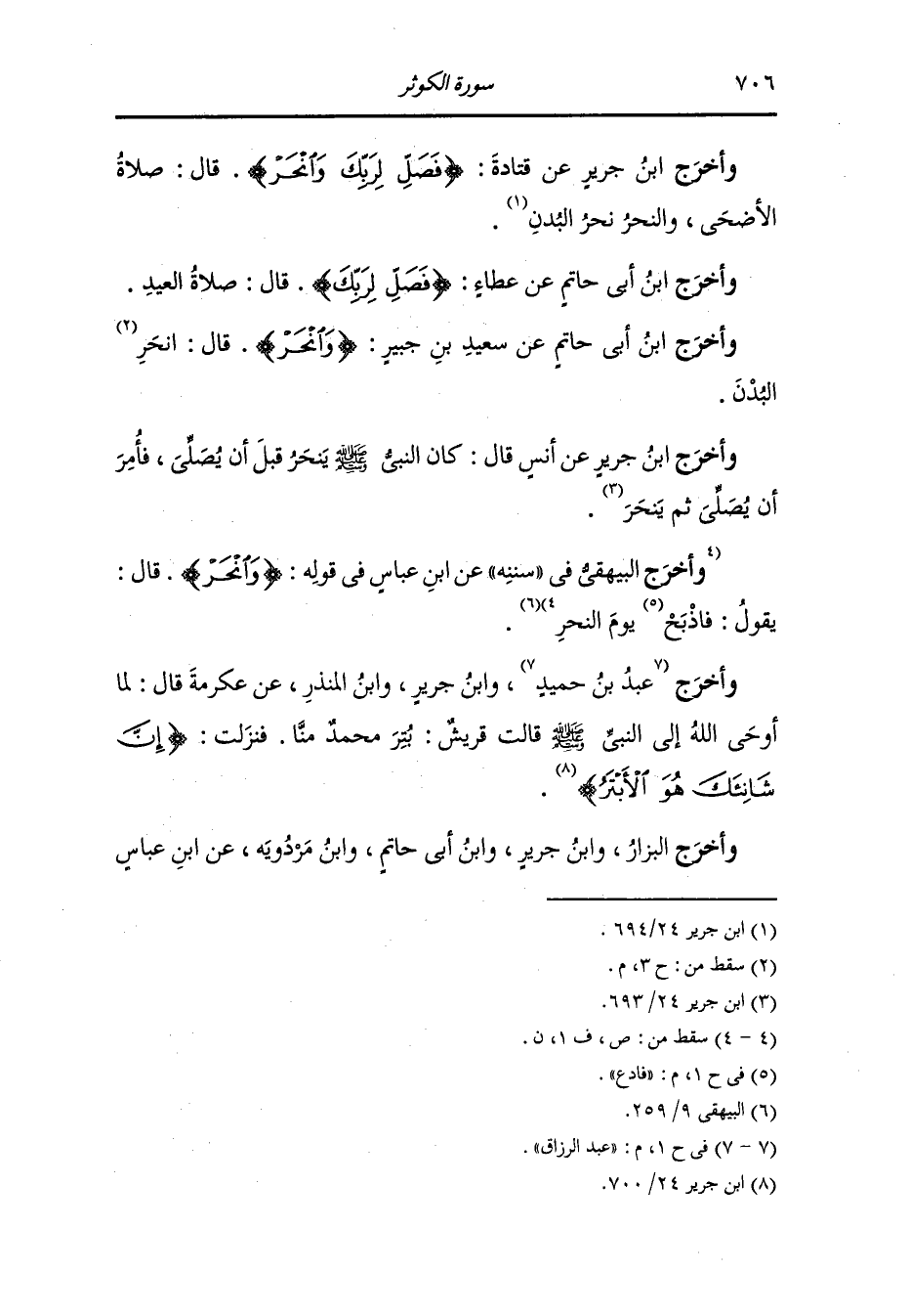 قال : قدم كعب بن الأشرف مكة فقالت له قريش : أنت خير أهل المدينة وسيدهم ألا ترى إلى هذا الصابئ المنبتر من قومه يزعم أنه خير منا ونحن أهل الحجيج وأهل السقاية وأهل السدانة قال : أنتم خير منه ، فنزلت {إن شانئك هو الأبتر} ونزلت (ألم تر إلى الذين أوتوا نصيبا من الكتاب) (سورة النساء الآية 15 - 25) إلى قوله : {فلن تجد له نصيرا}).