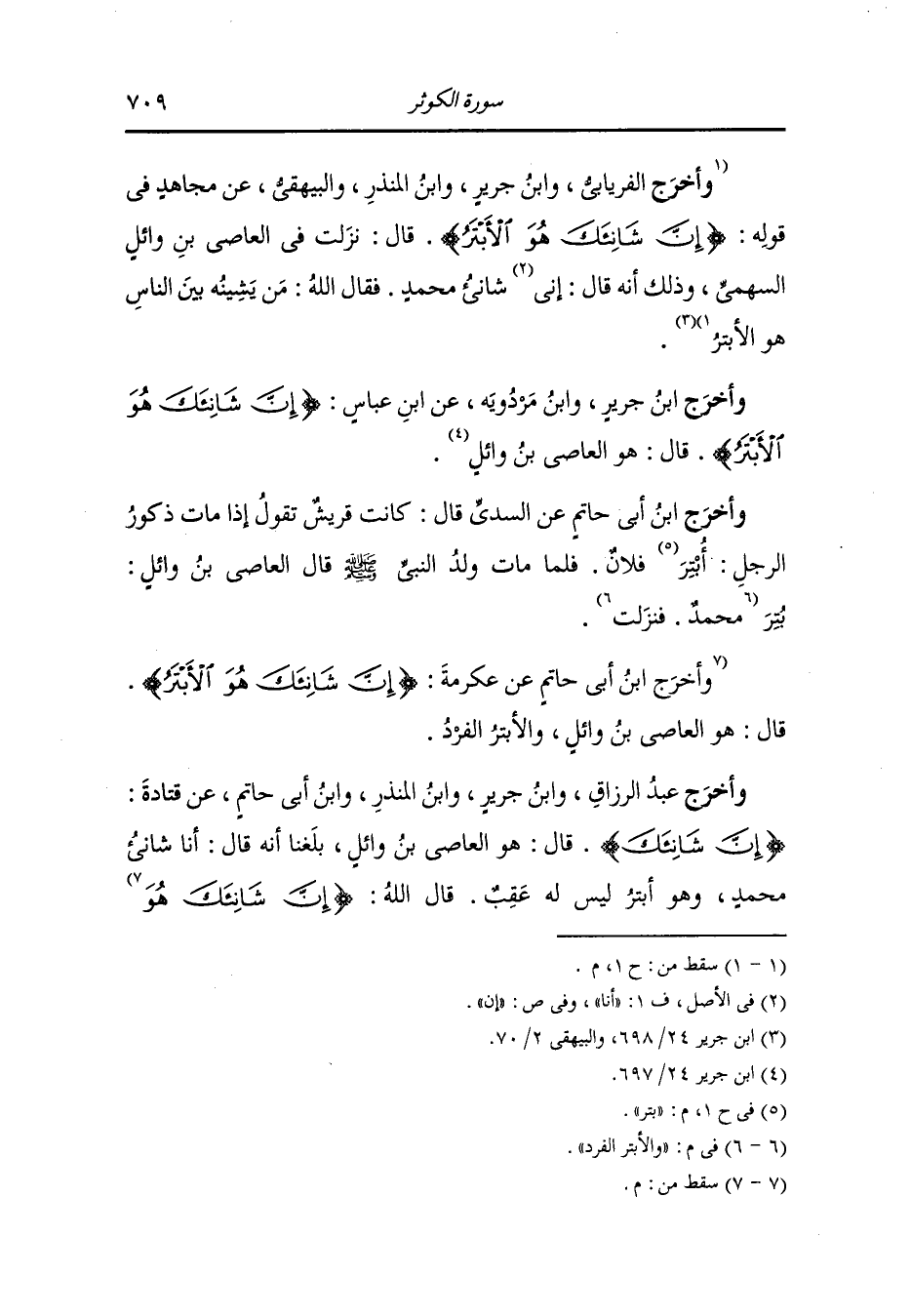 وَأخرَج ابن جرير ، وَابن المنذر ، وَابن أبي حاتم ، وَابن مردويه عن ابن عباس : (إن شانئك) يقول : عدوك ..