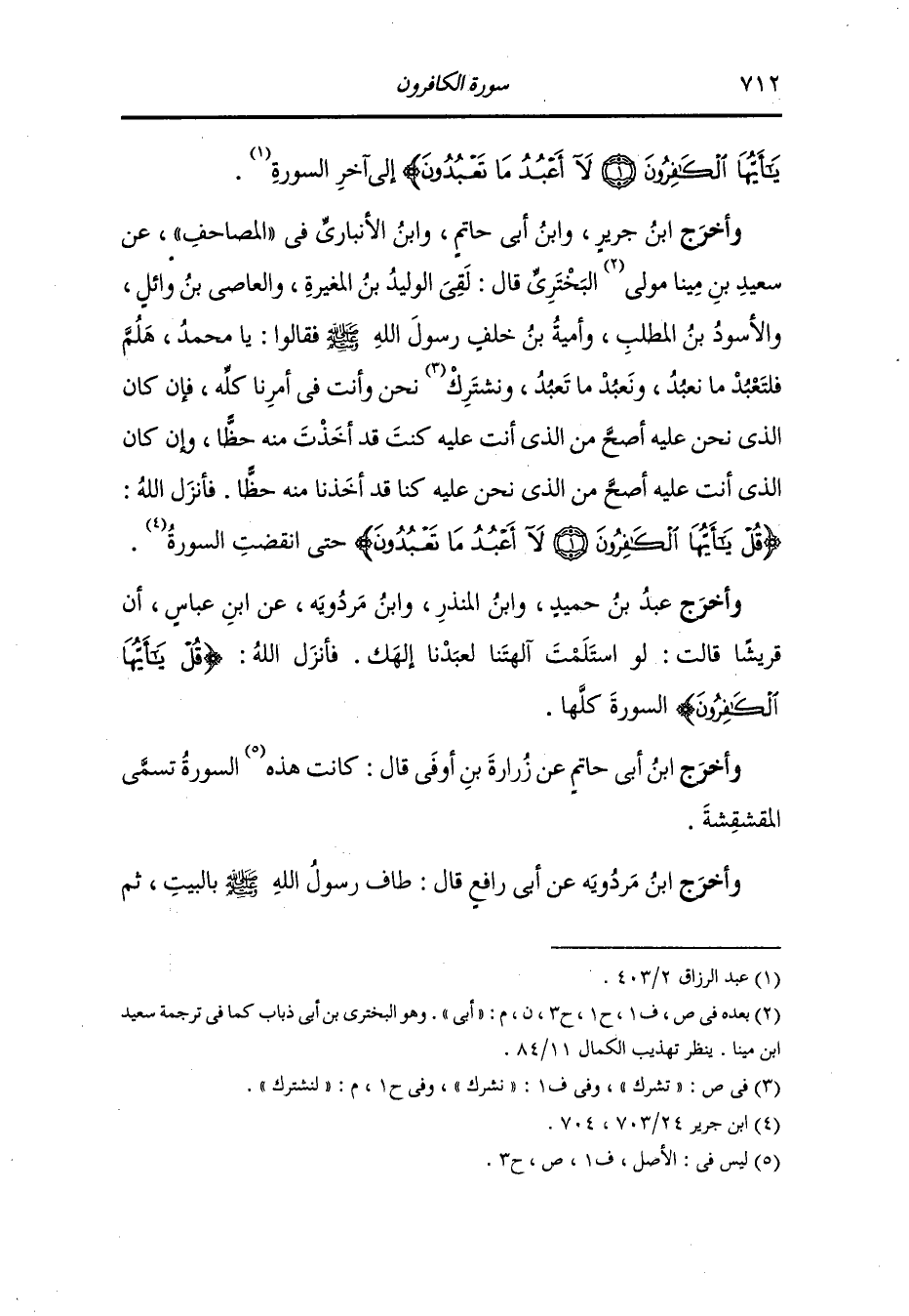 وأخرج البيهقي في "سُنَنِه" ، عَن جَابر بن عبد الله أن رسول الله صلى الله عليه وسلم طاف بالبيت ثم صلى ركعتين قرأ فيهما {قل يا أيها الكافرون} و(قل هو الله أحد).