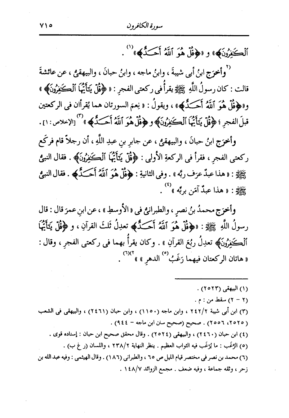 وأخرج ابن أبي شيبة عن غنيم بن قيس قال : كنا نؤمر أن ننابذ الشيطان في الركعتين قبل الصبح ب (قل ياأيها الكافرون) و(قل هو الله أحد) ..