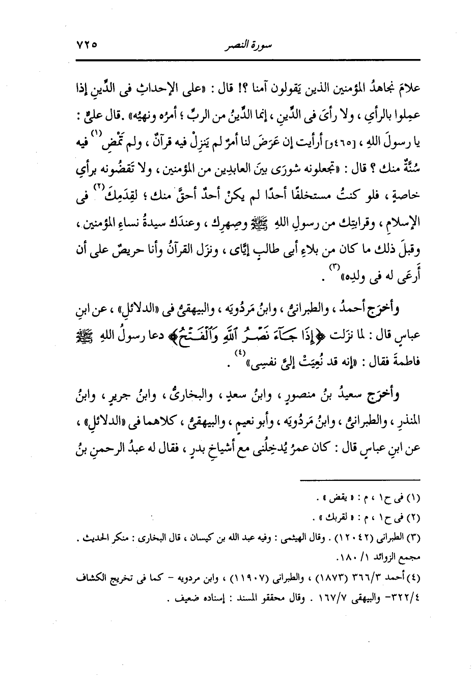وأخرج ابن مردويه عن ابن عباس أن عمر سألهم عن قول الله : {إذا جاء نصر الله والفتح} فقالوا : فتح المدائن والقصور قال : فأنت يا ابن عباس ما تقول قال : قلت مثل ضرب لمحمد نعيت له نفسه.